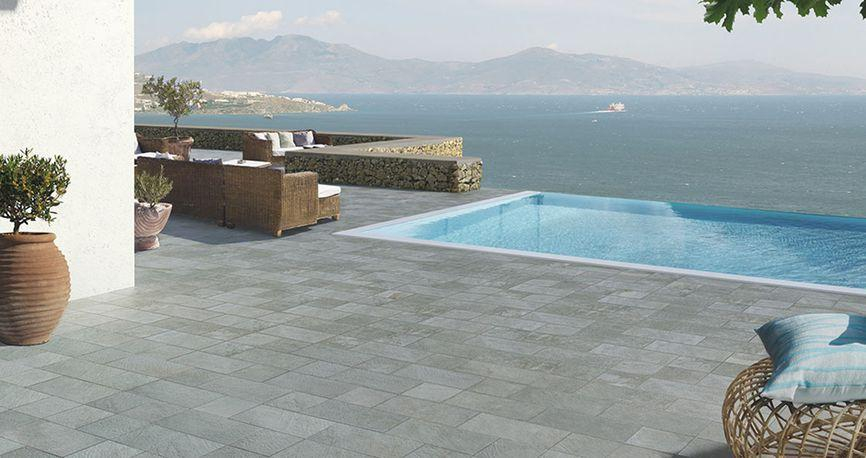 Patio è la serie in gres effetto pietra dalle avanzate prestazioni dalla bellezza ricercato e naturale, creata per la superfici in esterno di cortili, patii, verande, balconi e terrazzi.