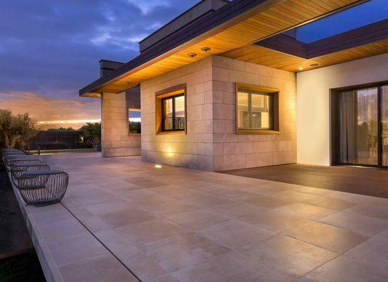 Le mattonelle in gres porcellanato effetto pietra di Pietra Baugè sono create in quattro delicate colorazioni leggermente sfumate, dal beige al sabbia fino ai vari bagni del grigio chiaro e dell’antracite e sono affiancate dall'esistenza di diverse tipologie di decori, consentendo quindi, molteplici abbinamenti compositivi, sia a pavimento che a rivestimento. Perfettamente squadrate e rettificate, per merito della superficie matt per l’interno e grip per l’esterno di 20 mm di spessore, sono consigliate per incontrare ogni esigenza progettuale in armonia tra l’interno e il proseguimento in esterno per la pavimentazione di balconi, patii, verande o camminamenti sia su piano erboso che su ghiaia.
