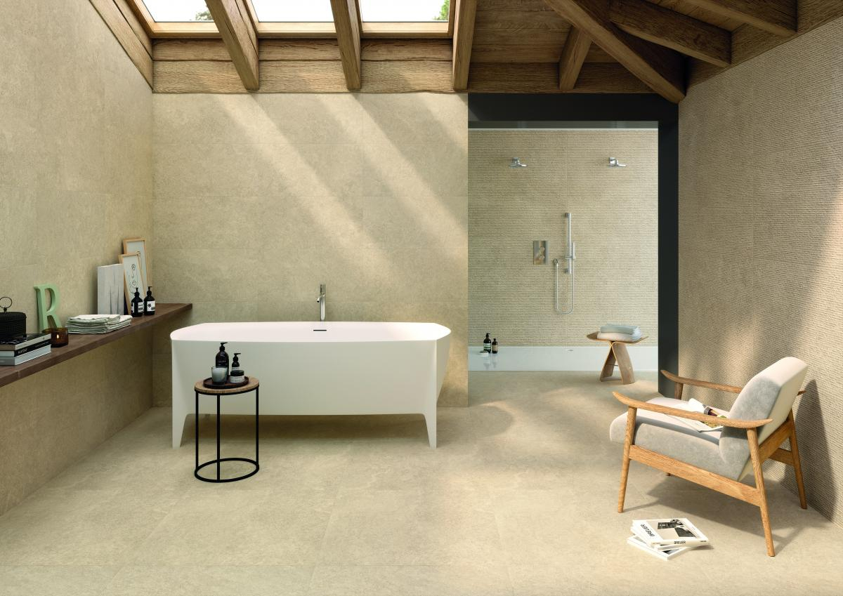 Landscape è una collezione sobria ed essenziale ispirata alla pietra calcarea, caratterizzata da colori naturali e venature eleganti, sfumature tono su tono e palette luminose.