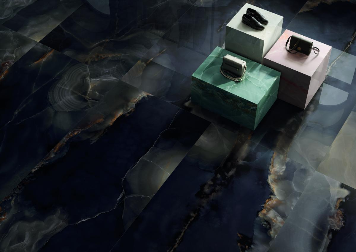 È l’onice la pietra protagonista della nuova collezione Tele di Marmo Onyx che dà vita ad una collezione sontuosa dove le sfumature e le trasparenze tipiche dell'onice donano tridimensionalità e luminosità. Anche con grandi formati per esaltare la maestosità del prodotto.