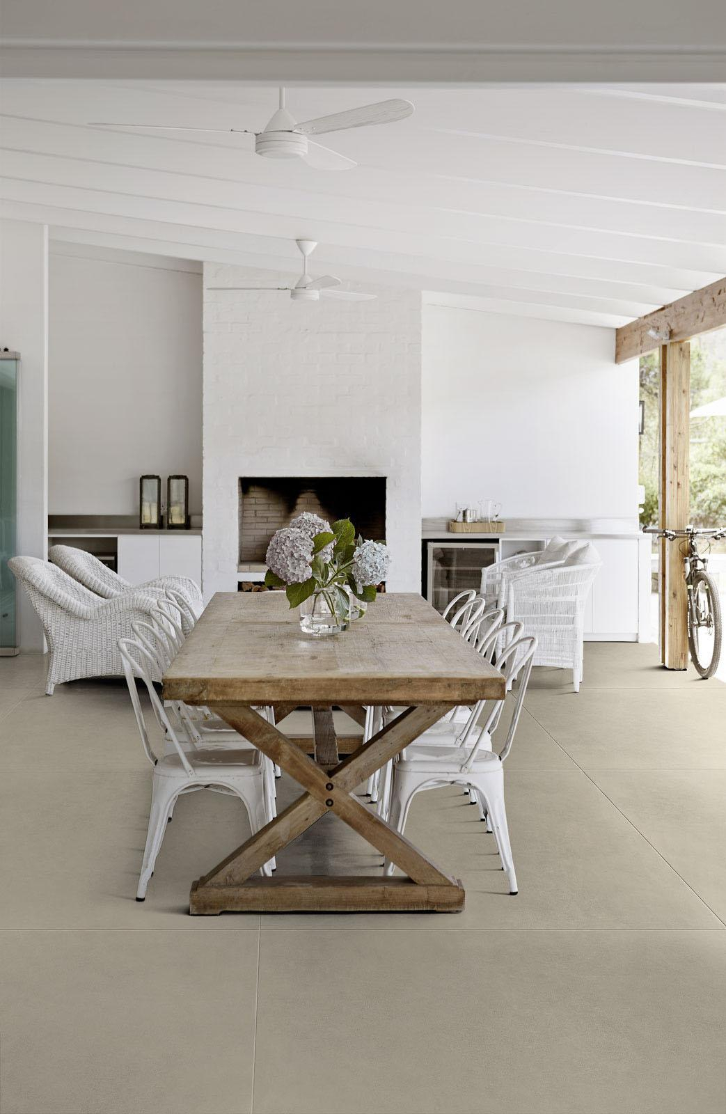 Una nuova collezione in grande formato che interpreta il cemento in forma minimalista. Superfici con una texture imperfetta e naturale che restituisce la sensazione di una materia leggermente usurata.