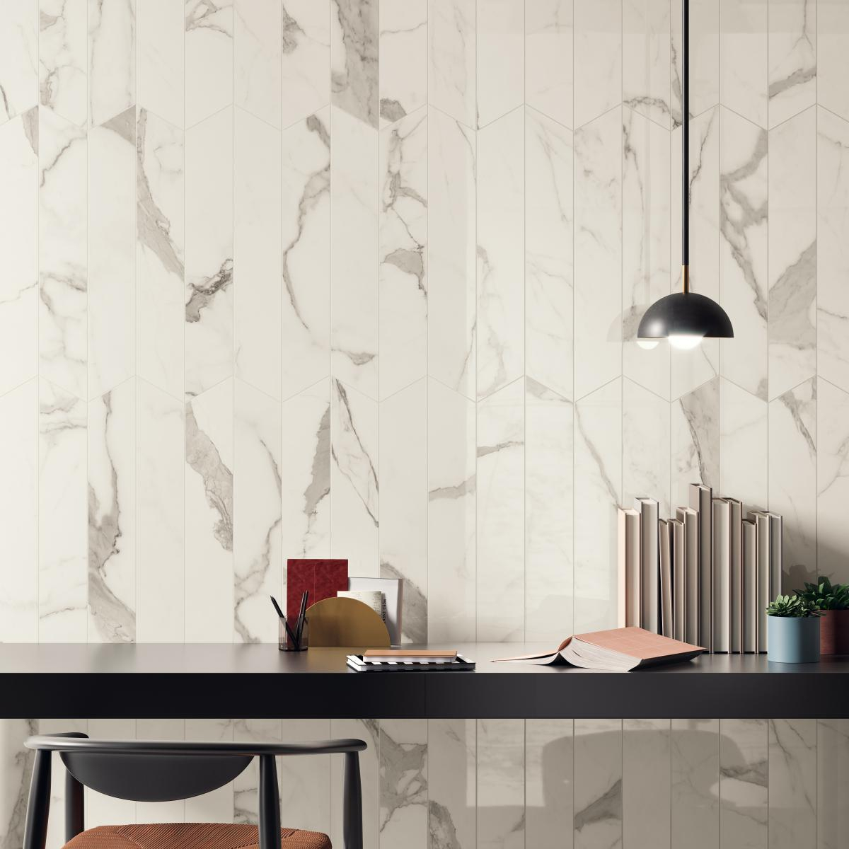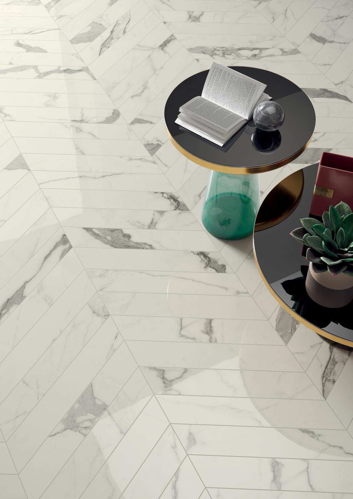 Pavimento Blu style serie Elite formato 10X60 colore Statuario battiscopa nascosto