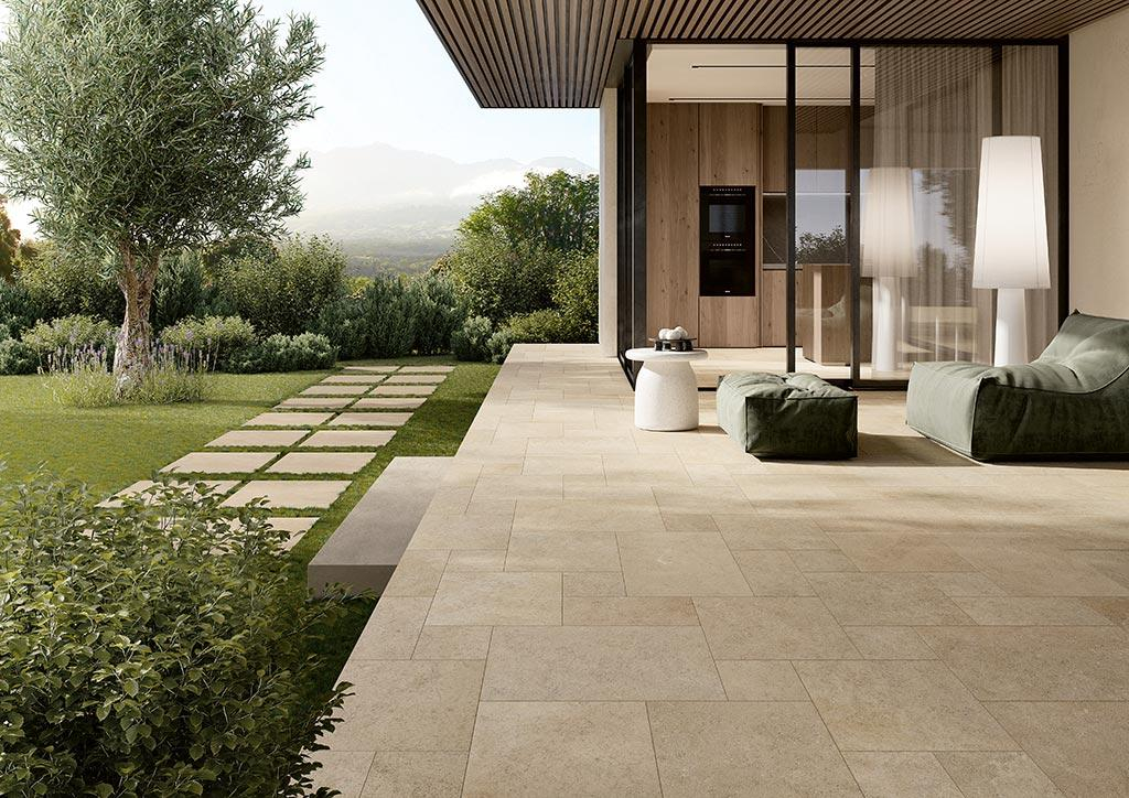 Pavimento Fioranese serie Autentica formato 60,4X 90,6 colore Beige esterno Gres Porcellanato per esterni e terrazzi effetto pietra e cemento