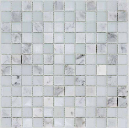 Pavimento Ston serie Lacca formato 2,3x2,3 colore Marmobianco+crystal