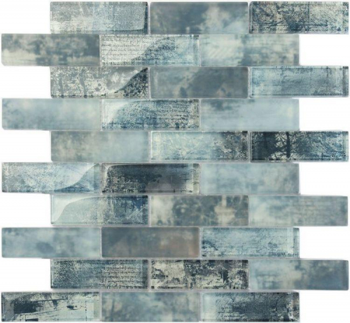 Pavimento Ston serie Vetro formato 30x98 mm colore Blu jeans